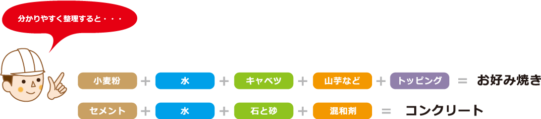 お好み焼きに例えてコンクリートを説明しましたが、イメージはつかめましたか?